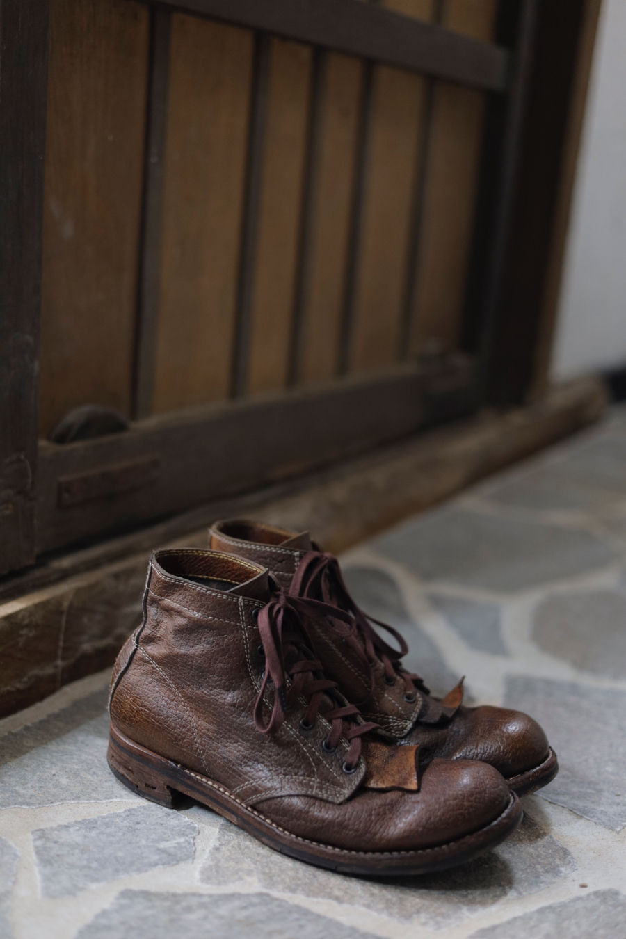 対するZENが選んだのは、害獣駆除された猪の革です。増えすぎた個体数が人間の生活圏と重なるとき、共存のバランスを取るために間引かれる命があります。その皮を、靴として履き継いでいく。枝打ちが森を健全に保つように、この選択もまた循環の一部です。四国や山陽地方など、原皮は広範囲からやってきます。均質化を目指す現代的品質管理から逆行し、恣意的なトリミングを受けない個性は、刺激的な革靴体験を与えてくれることでしょう。